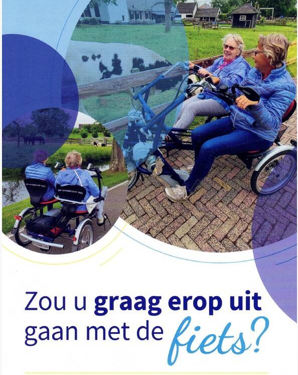 Het is de bedoeling dat er een duofiets op korte termijn beschikbaar is in Zegveld. Deze dag zal er gedemonstreerd en verteld worden hoe het in zijn werk gaat. Erg leuk om hem eens uit te proberen. Er gaat een vaste begeleider mee en u kunt lekker meegenieten van de heerlijke buitenlucht en de natuur om u heen.