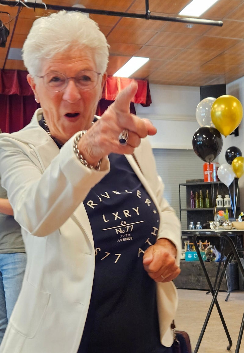 Zij is 40 jaar gymdocente bij de gymvereniging Zegveld en 25 jaar gymdocente bij de sportieve groep 70 +, (meer bewegen voor ouderen) van Welzijn Zegveld. Haar dochter heeft alle verenigingen, dat zijn er 9, aangeschreven om deze middag mee te maken. Alle groepen waren vertegenwoordigd in het Wierickehuis, er waren 110 enthousiaste sportieve deelnemers. Al deze groepen deden iets leuks. En wat was het superleuk om zo met elkaar deze feestelijke middag mee te maken.